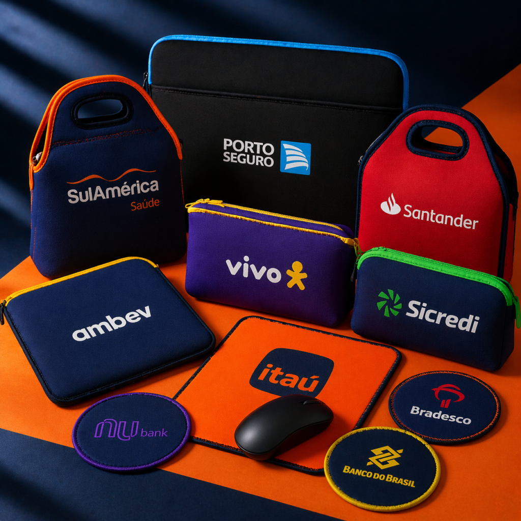 Ideais para ações promocionais, eventos corporativos e brindes personalizados, os produtos em neoprene se destacam pela versatilidade e excelente custo-benefício.
